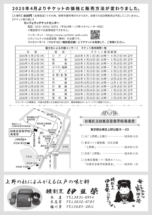一般:¥3,000 学生:¥1,000 (全席自由)