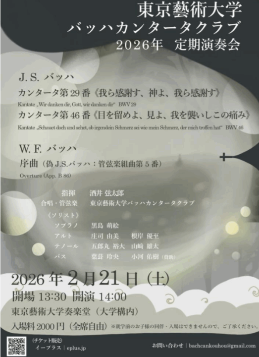 東京藝術大学バッハカンタータクラブ2026定期演奏会【終了しました】【満員御礼】